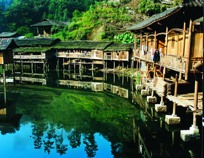 交通提示:從芙蓉鎮(zhèn)碼頭出發(fā),登上機(jī)動船,經(jīng)過約三個(gè)小時(shí)的行程,航道越來越窄,終停泊在一個(gè)小渡口。沿著碼頭拾級而上,不遠(yuǎn)便可登上開往小溪的班車。