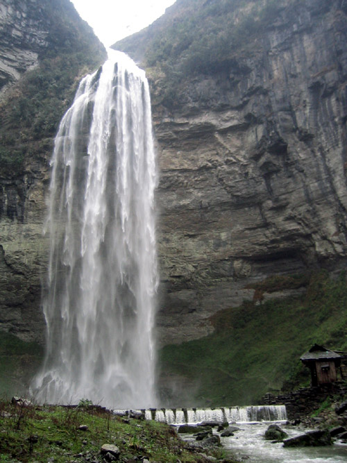 九龍溪源頭的流紗瀑布高216米,是全國(guó)最高的瀑布,有人說(shuō)它還是全世界最高的瀑布,在2011年入選“2011游客最喜愛的中國(guó)十大瀑布旅游勝地”。豐水期,滾滾流水從懸崖上飛落入深潭,猶如九龍翻波,吞云吐霧,聲若巨雷,震撼山谷,氣勢(shì)磅礴,雄奇壯觀!每當(dāng)枯水時(shí)節(jié),流水飄下懸崖,時(shí)而如輕紗拂面,時(shí)而似珠簾懸掛宛如白紗蕩滌綠潭漾起層層漣漪婀娜多姿溫柔秀雅。從正面仰望瀑布,好像瀑布是從云端飛流直下,可謂“飛流直下三千尺,疑是銀河落九天。”沿潭畔走至瀑布里去,象是猴王鉆進(jìn)了水簾洞。從瀑布背后觀瀑布,只看見瀑布是從一個(gè)半園形的“月亮巖”上飛瀉下來(lái)的。瀑布在飄、舞、進(jìn)、退,如浪、如波、如紗、如練。由于峽谷變幻莫測(cè)。當(dāng)陽(yáng)光照射時(shí),瀑布上簾便生出七彩長(zhǎng)虹。彩虹隨著水珠往下飄落:只見一彩虹落下,一個(gè)又冒出來(lái);一個(gè)緊接著一個(gè)地消失,一個(gè)緊接著一個(gè)地產(chǎn)生,那一道道閃現(xiàn)奇光的彩虹真是太美麗了!