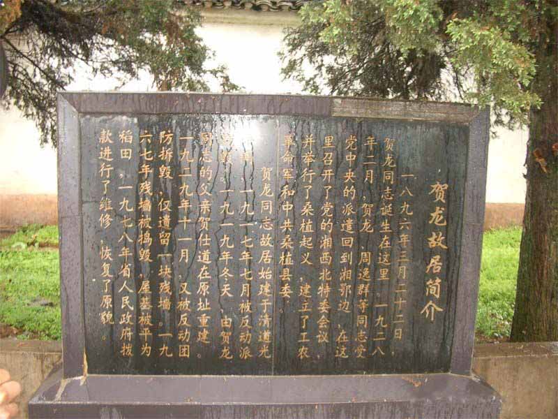 為了紀(jì)念偉大的革命元帥。1977年省縣兩級(jí)政府撥款,賀龍故居按舊居原貌修復(fù)的。賀龍紀(jì)念館于1996年3月25日賀龍誕辰100周年之際竣工落成,大門(mén)上首的墨色大理石匾額上,是江澤民親筆題寫(xiě)的“賀龍紀(jì)念館”幾個(gè)燙金大字。。賀龍紀(jì)念館與賀龍故居、賀龍橋成犄角之勢(shì)。