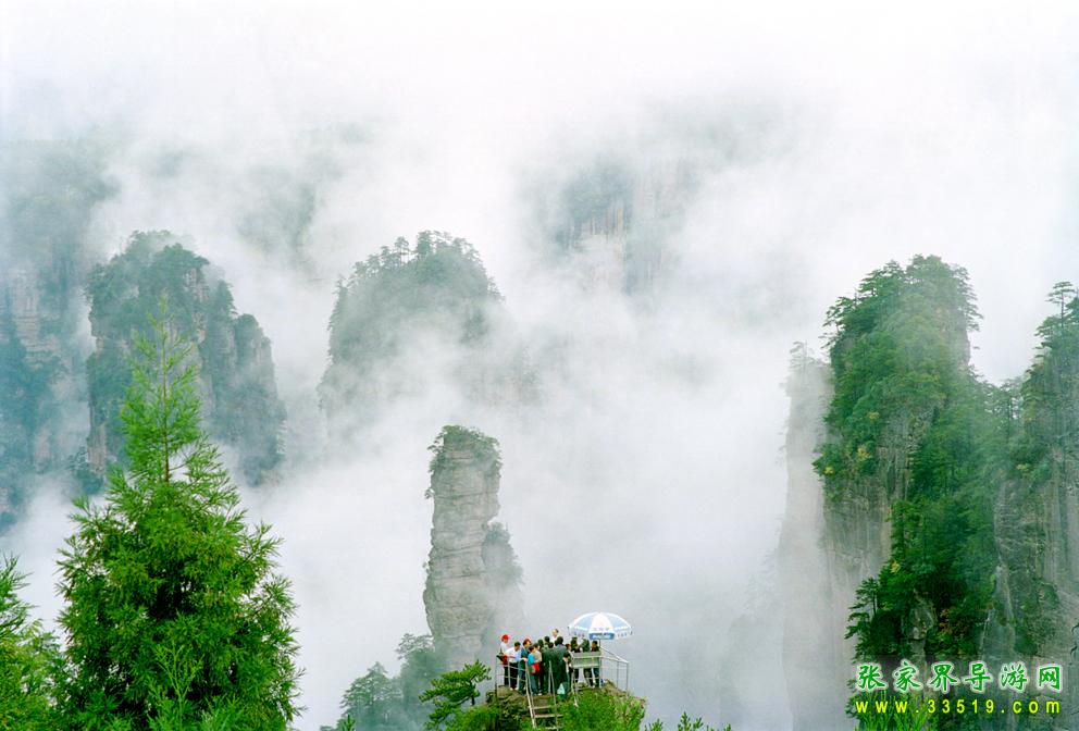 朱镕基總理考察這兒以后,曾寫了一首詩,其中一句是“張家界頂有神仙”張家界真有神仙嗎?假若真有,或許就是我們——有幸欣賞到如此“仙境”的人——“此‘景’只應(yīng)天上有,人間難得幾回‘看’”。難怪有人還有這樣的想法:“浮生若大夢,悠悠天境。我欲結(jié)茅舍,樂此不愿還。”