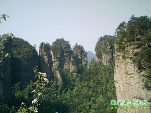 這個深不見底的峽谷中,數(shù)不清的石峰石柱密集廣布,爭頭露角,形成浩瀚的峰林。像人、像獸、像針、像線、像刀、像槍、像瓶、像塔、像世間成物,或連綿起伏,或嶙峋挺拔,千姿百態(tài),好像天下所有奇峰怪石都來這個峽谷,正在開一個盛大的Party(慶祝會)。面對這個“放大的盆景,縮小的仙景”,一種歡樂、舒暢的感覺油然而生。您是想喊,想叫,想拍照,還是想縱身一跳?想喊、想叫或是想拍照都沒問題,只是千萬別想跳,一“跳”便成千古恨,下面可是從來沒有人去過。傳說這是王母娘娘的御花園——王母娘娘未必真有,但說這兒是花園卻名副其實。張家界陽光充足,雨量充沛,“四季花兒開,一年春常在”,特別是陽春三月,山花爛漫,五顏六色,美不勝收。