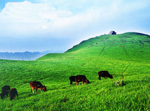比主峰低百米處是面積達(dá)2000余畝的平坦草原,是放牧開發(fā)養(yǎng)殖業(yè)的最好場所。