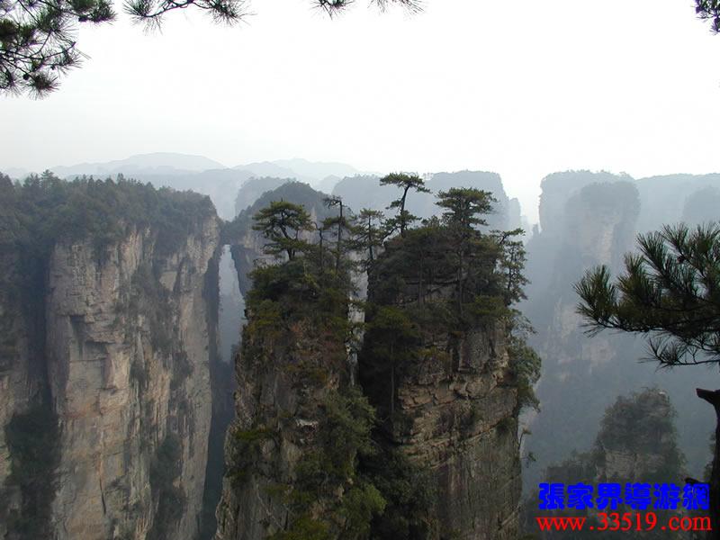 (天下第一橋)更多天下第一橋圖片>>>> 那就是“天下第一橋”。你們看,兩座山峰被一條長(zhǎng)廊連在一起,形成天然橋洞,平時(shí)吞云吐霧,氣勢(shì)壯觀雄奇。橋面寬約兩米,長(zhǎng)20余米,絕對(duì)高度357米。橋上蒼松挺拔,橋邊古藤垂掛,橋下深不可測(cè)。走在橋上,只見(jiàn)霧氣蒸騰,松濤呼嘯,石橋好像也顫顫悠悠,晃晃搖搖似的,令人驚心動(dòng)魄。這里是張家界風(fēng)景一絕,是大自然的一個(gè)奇跡。