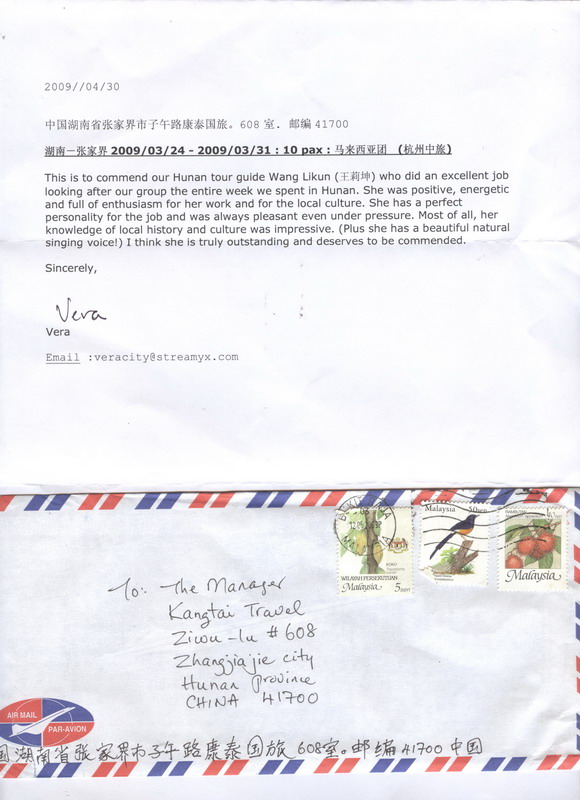 本公司導(dǎo)游,“王莉坤”由于帶團(tuán)期間出色的講解能力和高尚的人格魅力,贏得了游客們的高度評價。特發(fā)表揚(yáng)信如下: