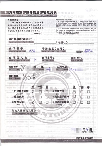 2011年5月26日栗先生一行19人旅游質(zhì)量反饋