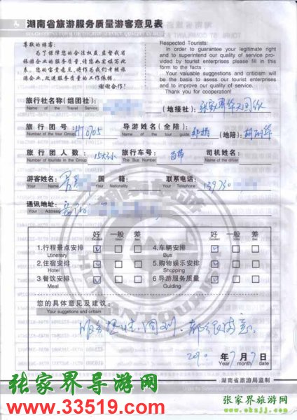 2010年7月7日岳陽(yáng)暑先生一行18位旅游質(zhì)量反饋