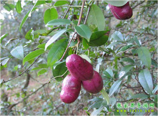八月瓜又名八月炸,木通和三葉木通的果實,野生果品。因八月果熟開裂而得名。果形似香蕉,富含糖、維生素C和12種氨基酸,以及人體不能合成的纈基酸、蛋氨酸、異亮氨酸、苯丙氨酸、賴氨酸等。果味香甜,為無污染的綠色食品,有“土香蕉”之稱。以天子山景區(qū)居多。索溪峪、楊家界等山麓谷地、林緣灌木叢中野生資源豐富。為上乘野果,現(xiàn)被有關(guān)部門列為重點(diǎn)開發(fā)項目。